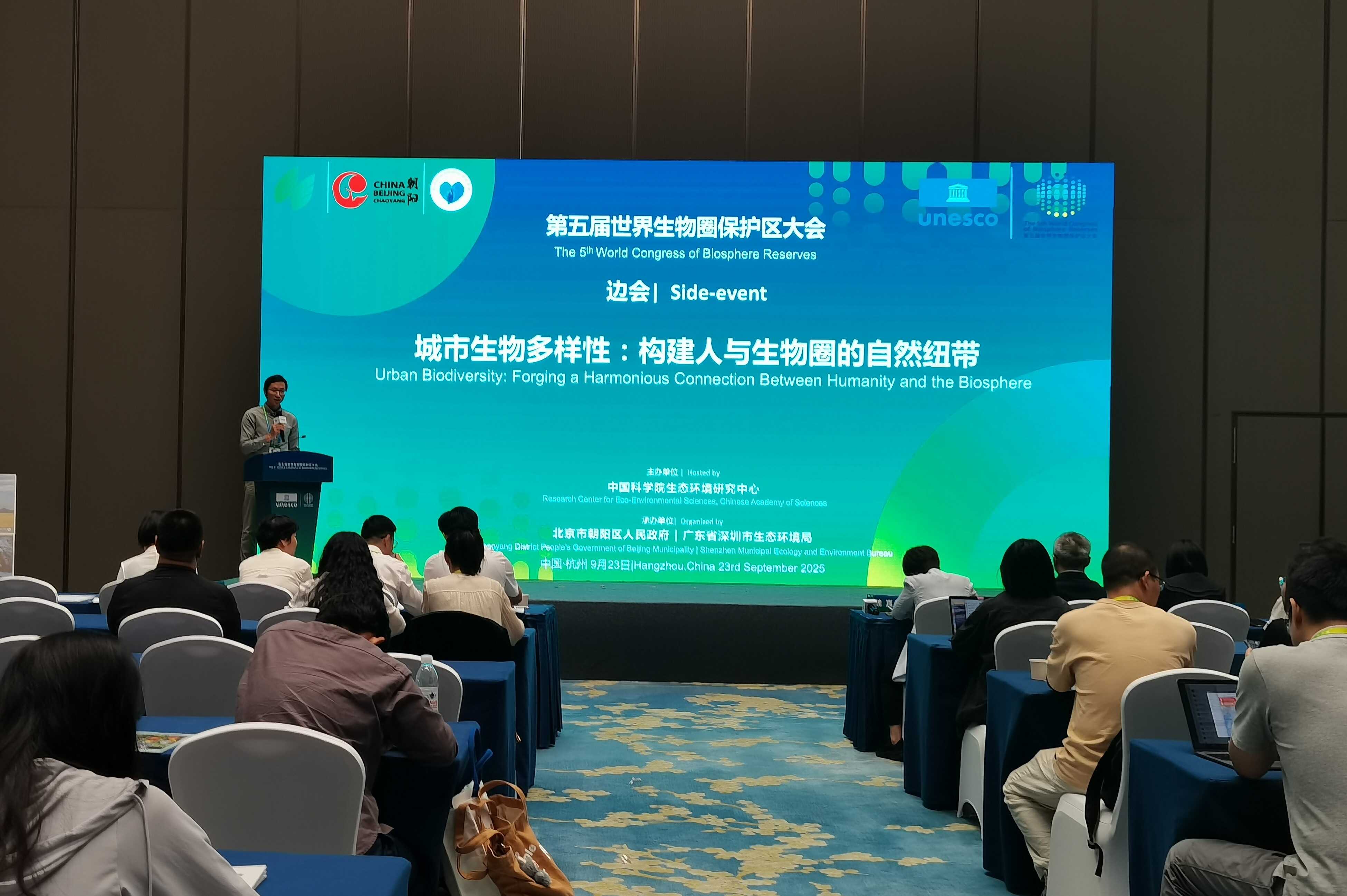 2025年9月23日,由中国科学院生态环境研究中心主办,北京市朝阳区人民政府、深圳市生态环境局承办的第五届世界生物圈保护区大会 “城市生物多样性:构建人与生物圈的自然纽带” 边会在杭州国际博览中心顺利召开。来自北京、深圳等地方政府部门,中国科学院、清华大学等科研院校,相关企业代表共40余人参会。中国科学院生态环境研究中心周伟奇研究员主持该会议。