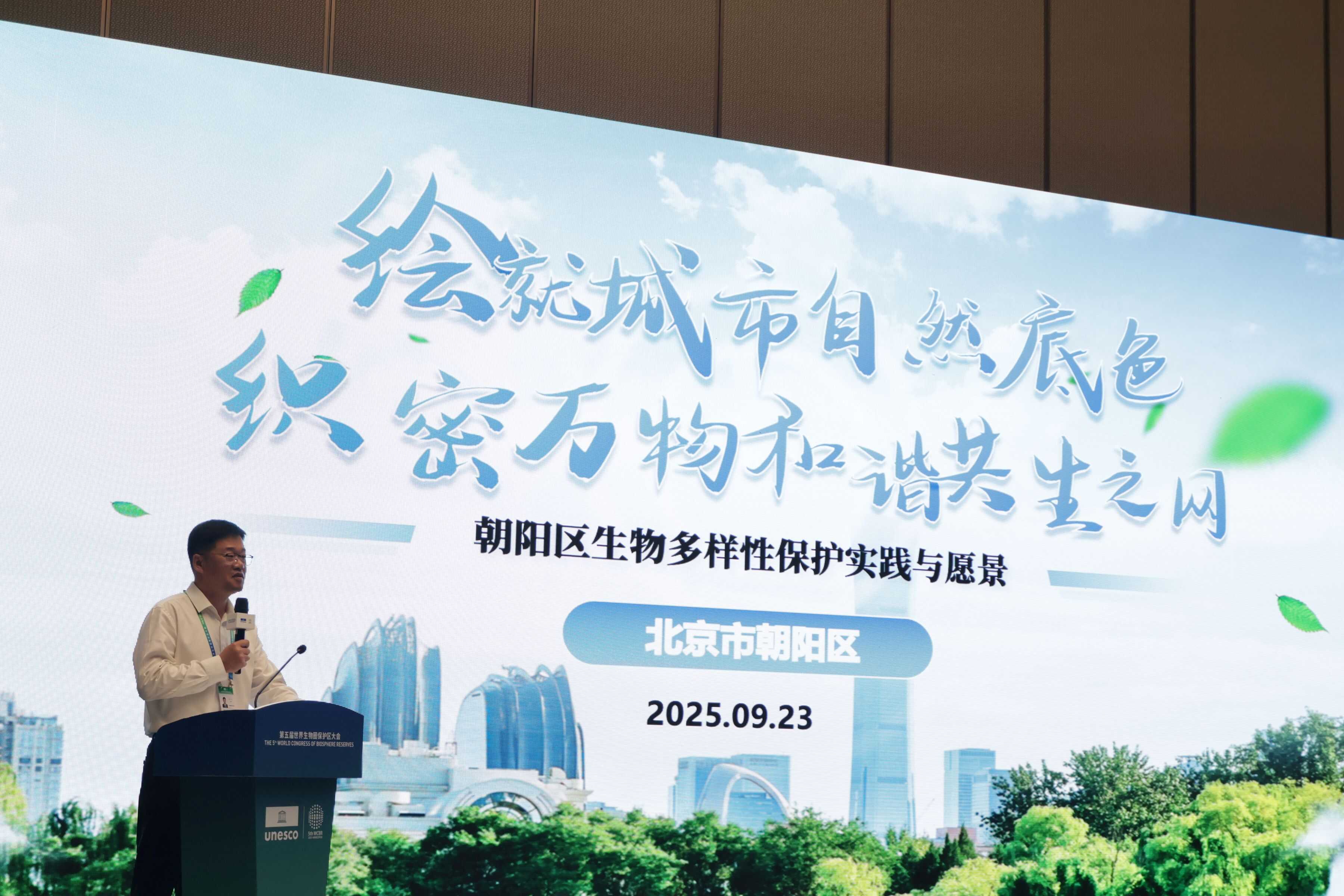 北京市朝阳区人民政府副区长杨洪福在致辞中介绍,朝阳区作为首都经济高质量发展的重要区域,始终以高标准、高要求推进城市生物多样性治理体系与能力现代化。近年来,朝阳区持续夯实生态本底,优化空间布局,加强科技赋能,与中国科学院生态环境研究中心合作在奥森公园建成首套城市生态系统智慧监测平台,实现对生物多样性变化的实时监测。同时,朝阳区积极开展国际交流,借鉴先进经验,将生态保护融入发展全局,通过划定生物多样性保护区域,推动生物在城市中栖息繁衍,持续深化生态文明建设,致力于将朝阳打造成为超大城市中心城区生物多样性保护的示范与国际展示窗口。